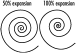 An Expanding spiral opens up as it moves out from the center. Non-expanding spirals are evenly spaced.
