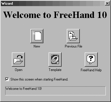 Launch FreeHand. The Welcome to FreeHand 10 Wizard appears