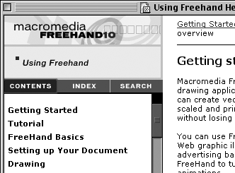 Choose Help > Using FreeHand. This launches your internet browser and opens the opening screen of the Using FreeHand files.