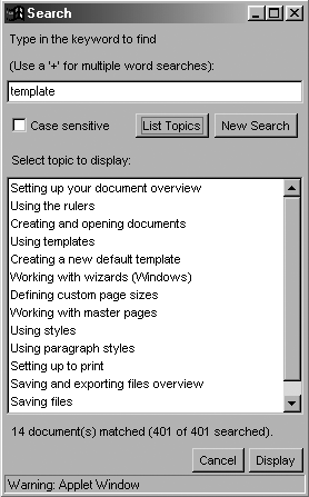 Click the Display button. The topic you chose will be shown in the main browser window.