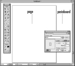 Inside the document window is the page on which you create your work. An area called the pasteboard surrounds the page . You use the Document inspector to adjust the size and orientation of the page.