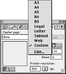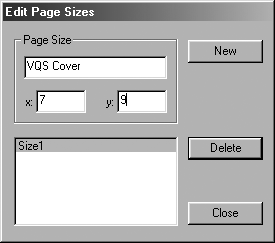 Choose edit from the page size list. The Edit Page Sizes dialog box appears