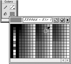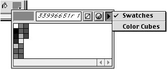 The pop-up color palette is set by default to show the 216 Web-safe colors. You can change that setting to display the colors in the Swatches panel.