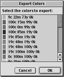 Hold down the Shift key to select a continuous range of colors from the Export Colors list