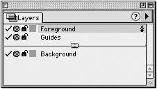 If you have not changed the default layers for your document, you should see three layers: Foreground, Guides, and Background 12312c217m