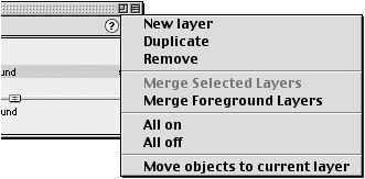Use the All on or All off commands in the Options pop-up menu to quickly show or hide all layers.