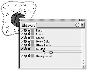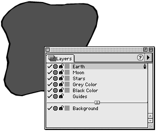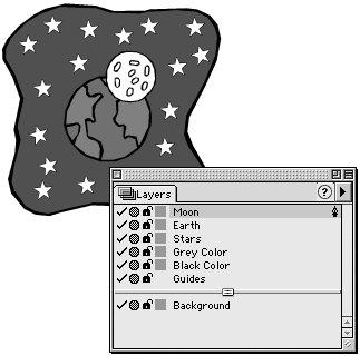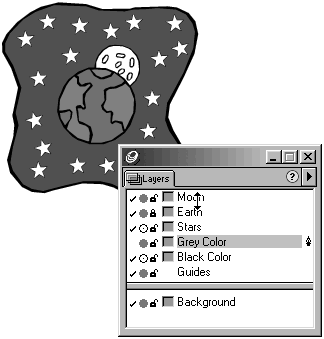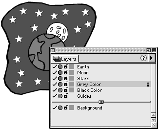 As your artwork becomes more complex, you may find that you need other ways of organizing objects. For instance, you may have many objects that overlap each other and you need to hide some objects while working on others. In that case, you will need to use FreeHand's Layers panel.