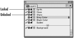 Some people do not like how easy it is to move objects from one layer to another. FreeHand lets you set a Preference that turns off the ability to move objects by clicking the name of a layer (see Appendix C
