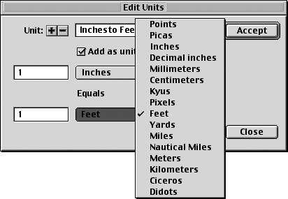 Use the first pop-up menu to choose one of FreeHand's basic units of measurement.