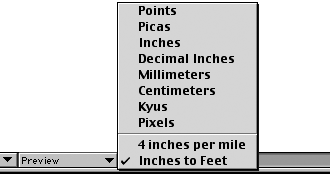 Choose one of the eight units of measurement from the menu at the bottom of the document window