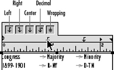The second part to working with tabs is to set the alignment tab stop. FreeHand also offers the ability to align text using five different types of tab stops.