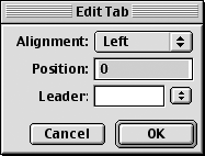 Enter a number in the Position field for where you want the tab located. This number is in relation to the left side of the text block.