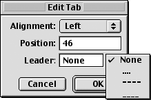 FreeHand sets default left alignment tabs at half-inch intervals.