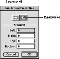 With the graphic still selected, choose Text > Run Around Selection. This displays the Run Around Selection dialog box