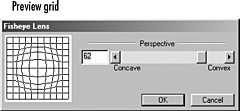 Double-click the Fisheye Lens tool in the Xtra Tools toolbar . The Fisheye Lens dialog box appears