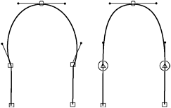 FreeHand has a special kind of point - the connector point - that is not found in most other vector-drawing programs. Connector points provide a smooth transition between straight lines and curves. Connector points ensure that the handle that defines the curve always stays aligned with the direction of the straight line