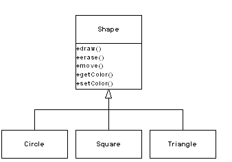 Consider the shape example. The family of classes (all based on the same uniform interface) was diagrammed earlier in the chapter.