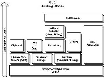 Even though these are the ways that the end user sees OLE, all the other OLE services are part of these three in some way. For example, COM is a part of all three; linking and embedding are part of OLE documents.