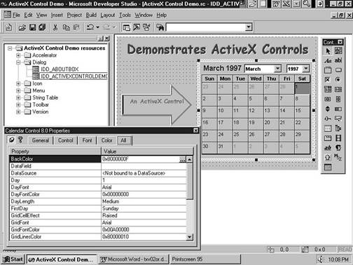 In the beginning of this chapter, you saw how an object from another application could be embedded in a host application. In addition, that object could be activated in-place for visual editing. Likewise, OLE controls are built on the concept of OLE documents and can be activated in-place.