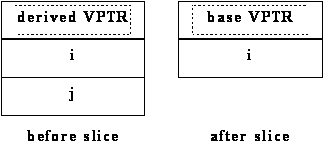 Now you may wonder about the virtual function call. Here, the virtual function makes use of portions of both Base (which still exists) and Derived, which no longer exists because it was sliced off! So what happens when the virtual function is called?