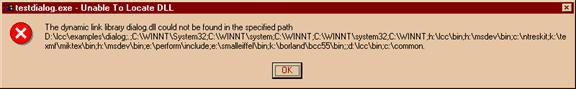 Well, if you reflect about this, this is quite normal. A DLL must be linked when the execution of the program starts. The system will search in the start directory of the program, and in all directories contained in the PATH environment variable. If it doesn't find a "dialog.dll" anywhere it will tell the user that it can't execute the program because a missing DLL, that's all.