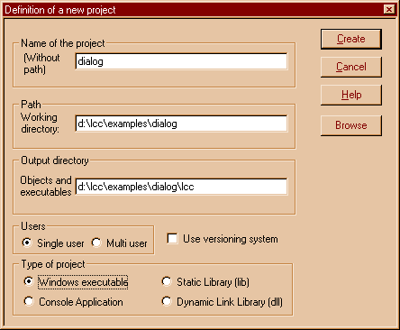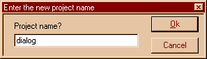 But let's go step by step. First we create a project. The first thing you see is a dialog box, not very different from the one we are going to build, that asks for a name for the new project. You enter a name like this: