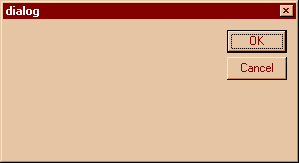Just a dialog box, with the famous OK/Cancel buttons, and nothing more. But this is a start. We close the dialog, either by pressing the "x" button at the top right corner, or just by using OK or Cancel, they both do the same thing now, since the dialog box is empty.