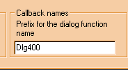 We see again that "Dlg400". but this allows us to explain how those names are generated actually. The names of the generated functions are built from the prefix of the dialog box, then the prefix for the element, and then a fixed part that corresponds to the event name. We edit the prefix again, following this convention.