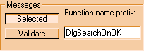 The "Selected" message is on, so the framework will generate a call to a function called DlgSearchOnOkSeelected().Happily for us, we do not have to type those names ourselves.