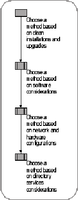 Software considerations that affect your automated installation method include whether you plan to deploy server or client operating systems, what types of applications you plan to deploy along with the operating system, and the configuration of servers you plan to deploy. Figure 1.3 illustrates the place of this step in the process of choosing an automated installation method.
