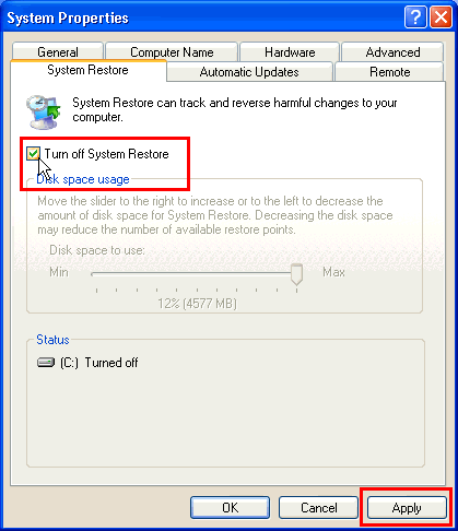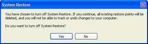 4. Select "Turn off System Restore" or "Turn off System Restore