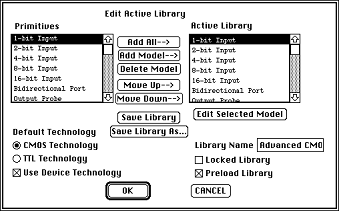 You should now be back in the edit library dialog box. Choose Save Library to save the change you made. Then choose OK to close the Library Editing dialog box. When you return to the circuit, the 74HC42 will be in the Advanced CMOS device library.