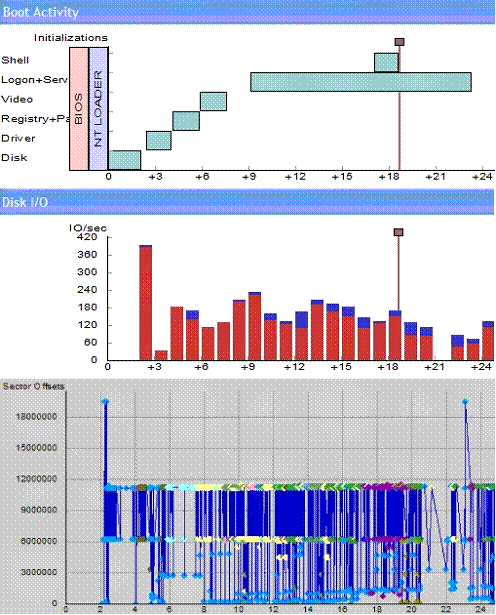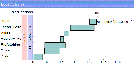 Note: The vertical bars for BIOS and NT Loader can not be measured by kernel instrumentation because the kernel is not running at that time.