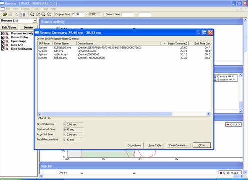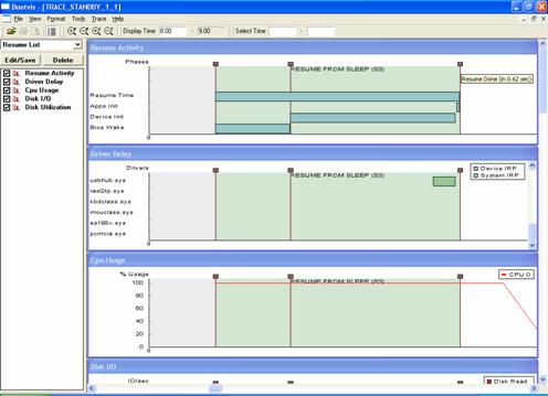 After the system resumes from Standby, Bootvis.exe will automatically open and display the resume trace file, as shown in Figure 8.