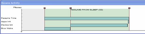 The green horizontal graph bars graphically illustrate the resume phases in time. Placing the mouse cursor over the graph bars will present a tool tip with the bar title and time elapsed.