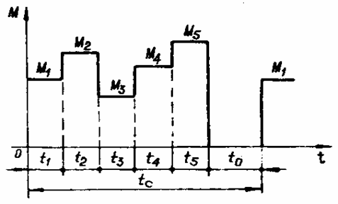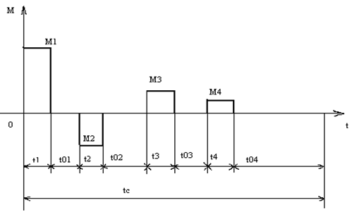 Se determină valorile cuplului de sarcină în fiecare din cele patru etape de virare a ancorei si duratele respective si în baza lor se construieste diagrama de sarcină din figura 7.8.;