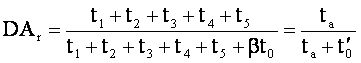 Deoarece constanta de timp termică în perioada functionării (la încălzire) T este diferită de constantă de timp termică T', pentru a utiliza metoda mărimilor echivalente, care presupune T invariabil pe întreg ciclul, se corectează timpul de repaus si se introduce notiunea de durată relativă de actionare raportată (corectată) DAr. Pentru diagrama de sarcină din figura 7.9. durata relativă de actionare raportată va fi: