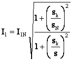În cazul motoarelor asincrone cu alunecare mărită, la determinarea functiei I1=f(s) se poate utiliza următoarea expresie: