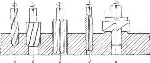 a – gaurire; b – largirea gaurilor cu adancitorul;