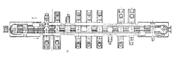 Liniile automate deschise au in general utilajele dispuse rectiliniu sau dupa combinatii rectilinii (fig.15,b). Acest tip de linie are avantajul amplasarii pe o suprafata de atelier mai mica dar de o latime mai mare ca a liniilor automate inchise.