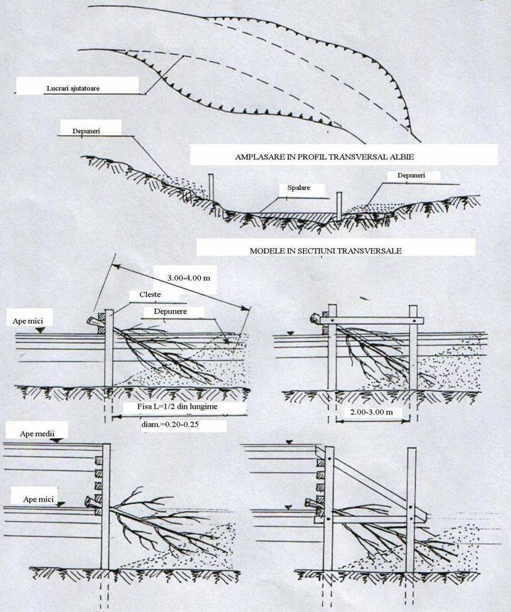 cand este vorba de albii late pe care apele vagabondeaza, avand adancimea mica, se utilizeaza lucrari ajutatoare