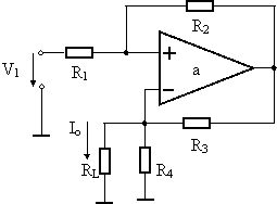 a) Care este expresia curentului Io functie de tensiunea V1 si rezistentele din circuit?
