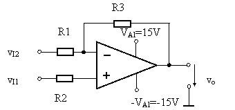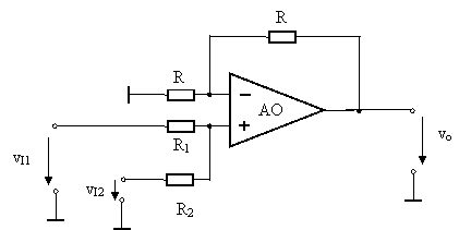 a) Care este expresia tensiunii vo functie de vI1 si vI2 daca R1=10KΩ si R2=30KΩ.