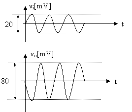 Masuratori în c.a.: Pentru vi tensiune sinusoidala cu amplitudinea de 20mV si componenta continua de 0V, tensiunea de iesire vo=0V.