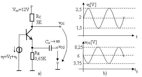 Se da aplificatorul cu tranzistor din figura a) Cu ajutorul osciloscopului se vizualizeaza vI(t) si vO1(t), prezentate în figura b).