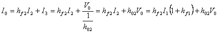 Prin īnlocuirea relatiei dintre curenti se obtine expresia tensiunii VI īn functie de curentul de intrare I1