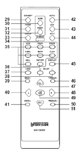 18. Tasta pentru ajustarea volumului la boxa surround dreapta