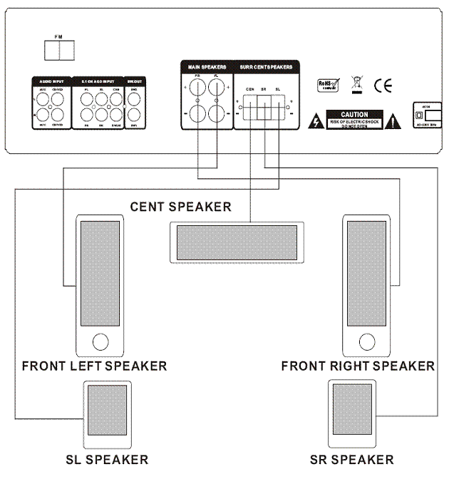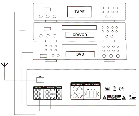 Conectarea surselor de semnal si a boxelor se face ca in imaginile de mai jos: