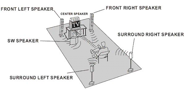 Schema asezarii aparatului intr-o camera si conectarea boxelor