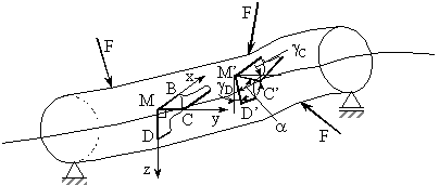 Īn fig. (IV.6) este prezentata deformatia unghiulara a cubului elementar īntr-un singur plan yz.
